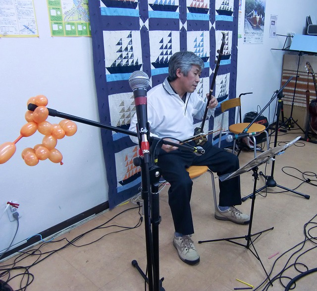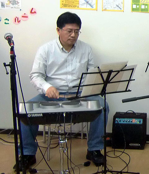 しゅうちゃん、いつも後ろの隅っこで演奏です。ありがとうございます。