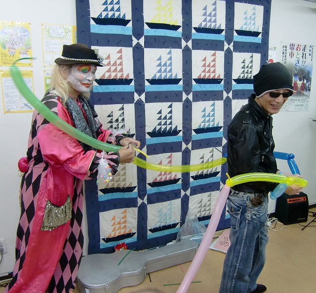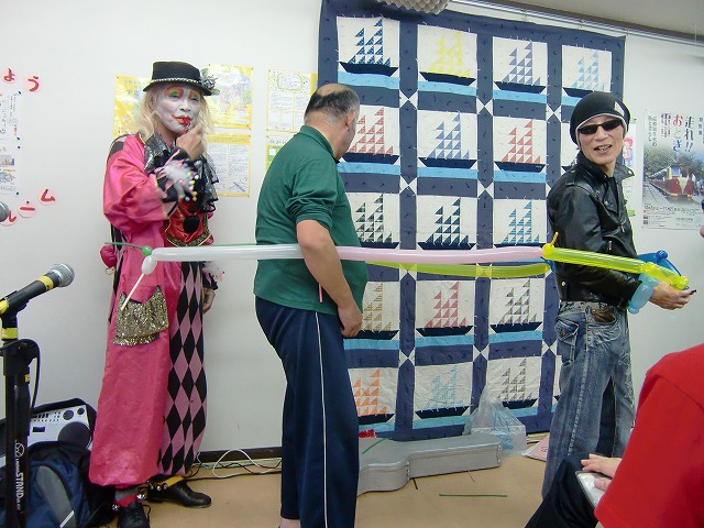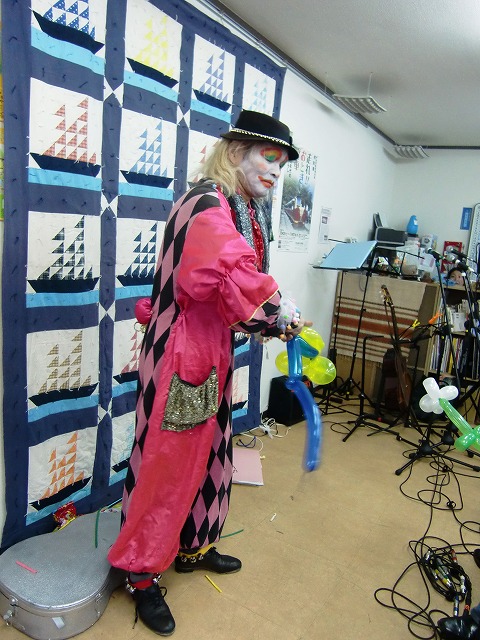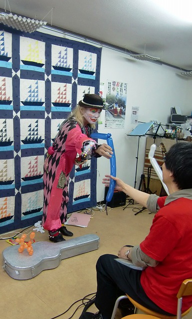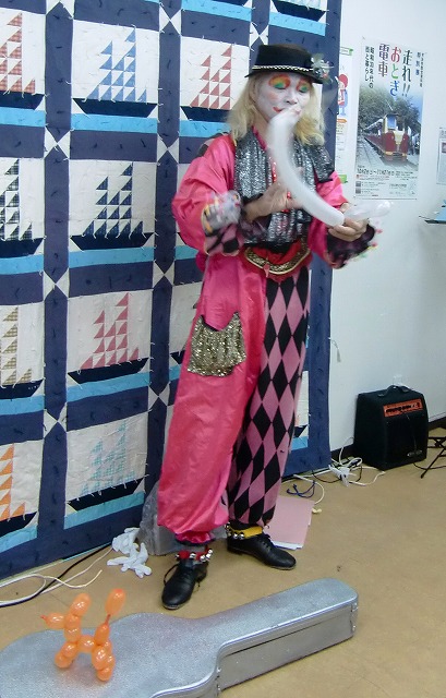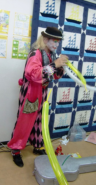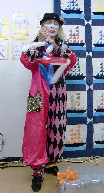 一言もしゃべらずに全身をつかって表情豊かに風船をを膨らませてひねって