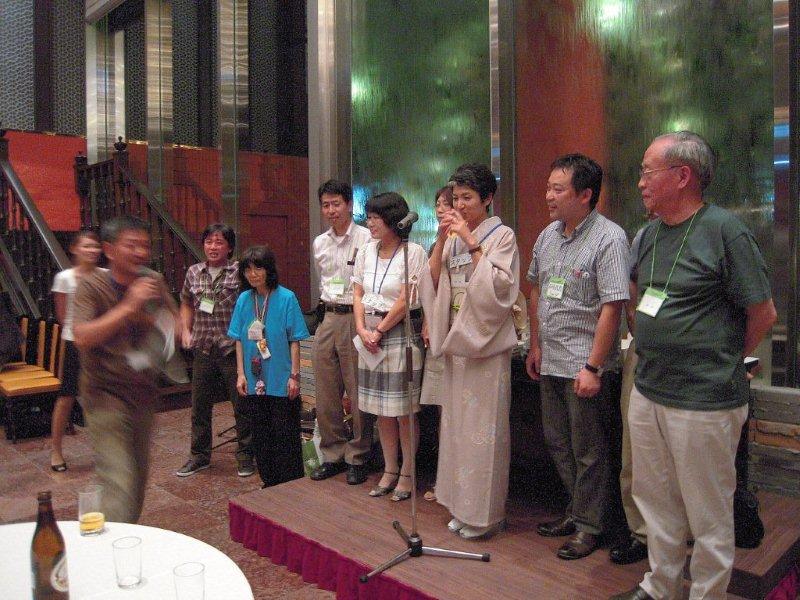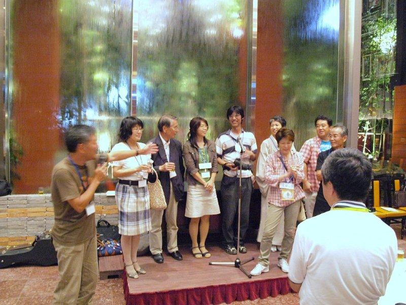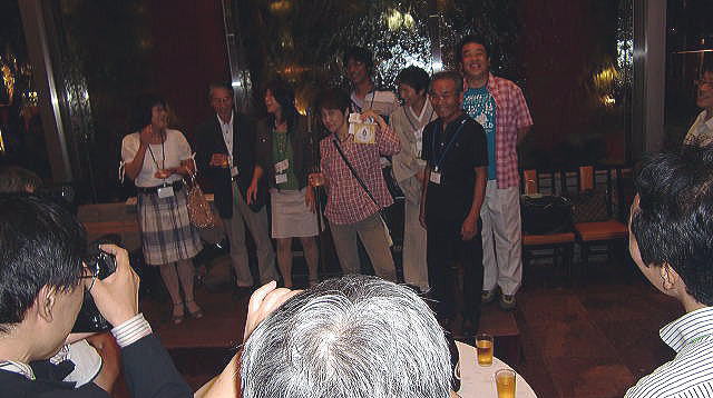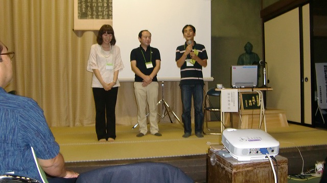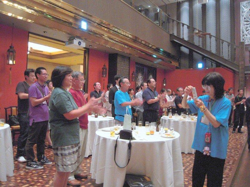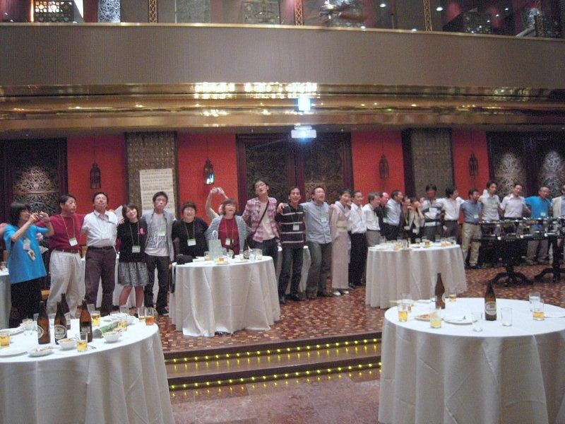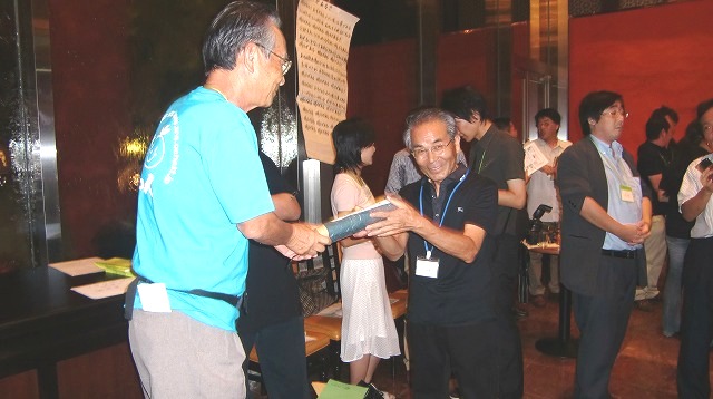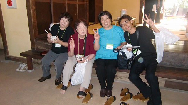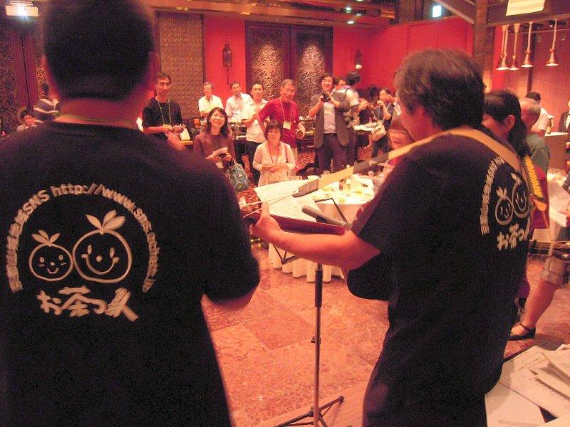 フィナーレ お茶っ人メンバーのリードでみなさん肩を組んで大きな一つの輪になって大声で合唱してくださいました。 メインフォーラムでは地域社会のあるべき姿、地域SNSはその実現にどのように役立っていくかなど いっぱい学習させていただきました。 物産展も宇治からお茶、紫の稲わら、源氏物語goods、お茶っ人Tシャツ、その他を元気よく販売し、買っていただきました。 懇親会はとても素晴らしい懇親会でした。最高に盛り上がりました。写真から楽しさが伝わってきます。 お茶っ人は24名が参加しました。沢山のメンバーが行けてよかったと思います。 1日目の写真報告はこれで終わりです。 お世話いただいた掛川のみなさん、ありがとうございました。 明日もよろしくお願いします。 引き続き2日目のホームページを作ります。 みなさん、どうぞお楽しみに!! お茶っ人 あきこ@村上 晶子 |