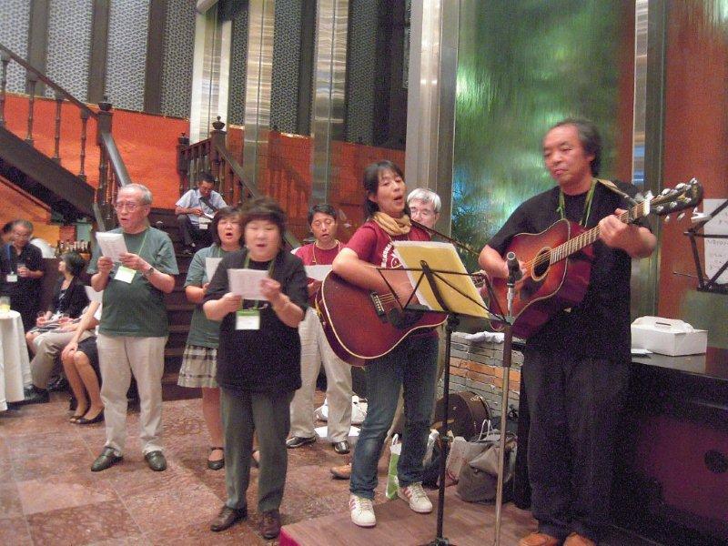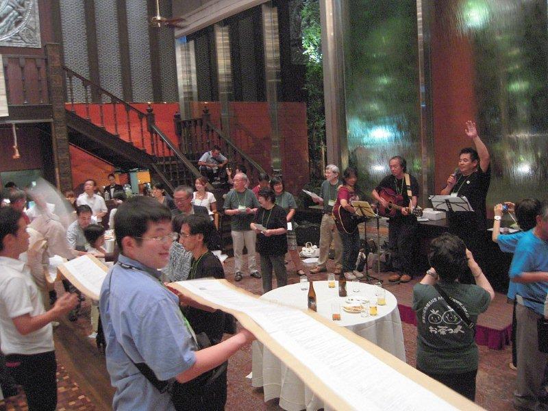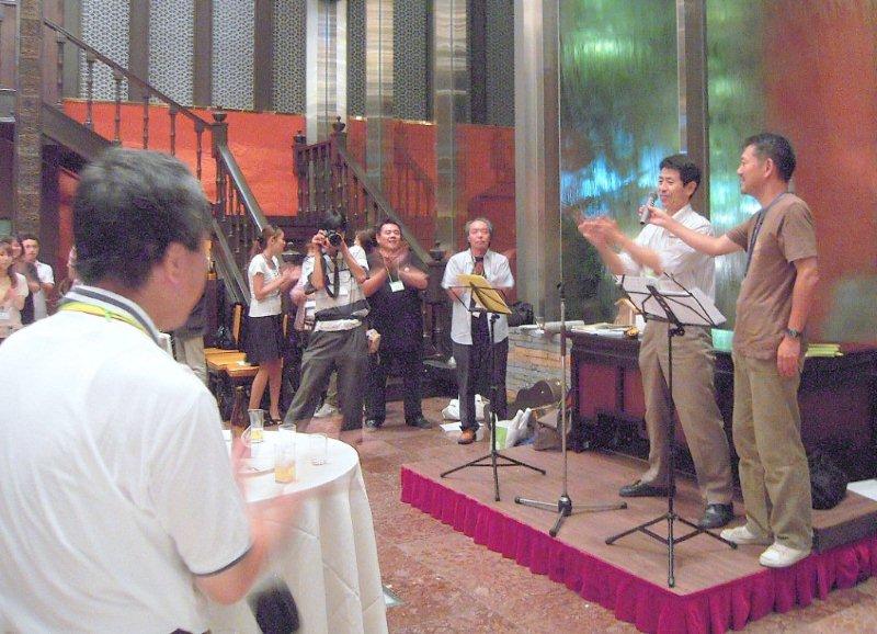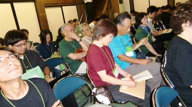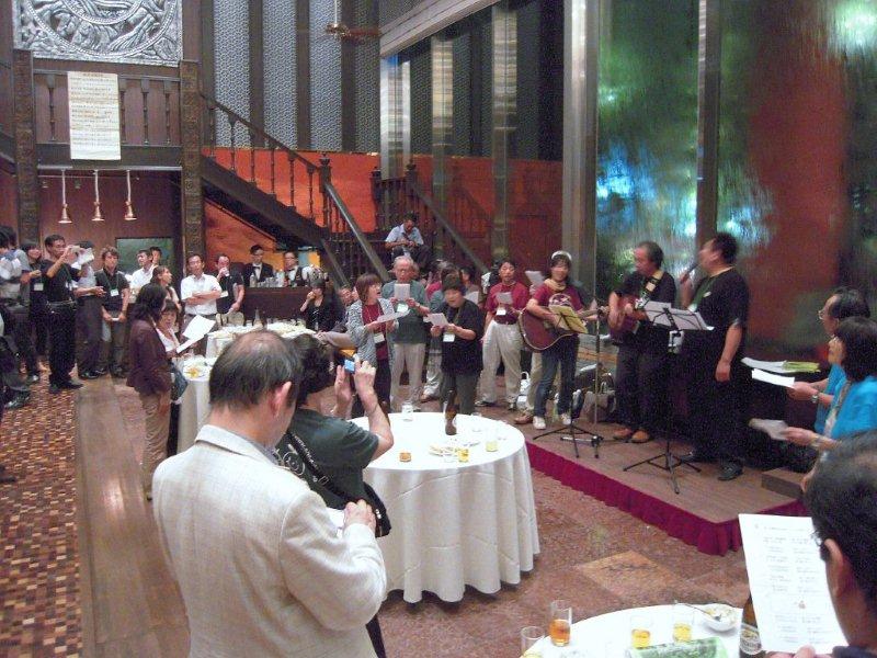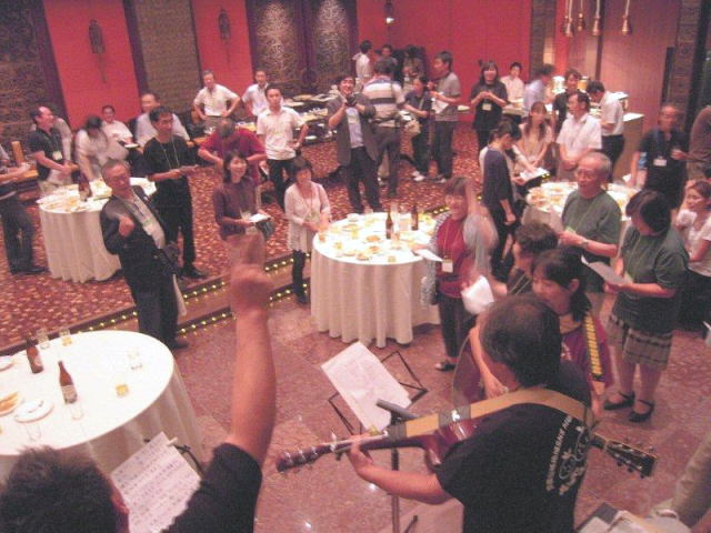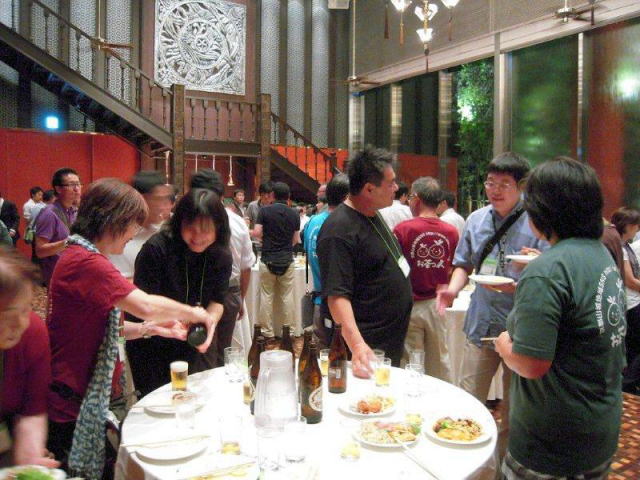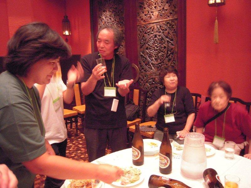 フィナーレ お茶っ人メンバーのリードでみなさん肩を組んで大きな一つの輪になって大声で合唱してくださいました。 メインフォーラムでは地域社会のあるべき姿、地域SNSはその実現にどのように役立っていくかなど いっぱい学習させていただきました。 物産展も宇治からお茶、紫の稲わら、源氏物語goods、お茶っ人Tシャツ、その他を元気よく販売し、買っていただきました。 懇親会はとても素晴らしい懇親会でした。最高に盛り上がりました。写真から楽しさが伝わってきます。 お茶っ人は24名が参加しました。沢山のメンバーが行けてよかったと思います。 1日目の写真報告はこれで終わりです。 お世話いただいた掛川のみなさん、ありがとうございました。 明日もよろしくお願いします。 引き続き2日目のホームページを作ります。 みなさん、どうぞお楽しみに!! お茶っ人 あきこ@村上 晶子 |