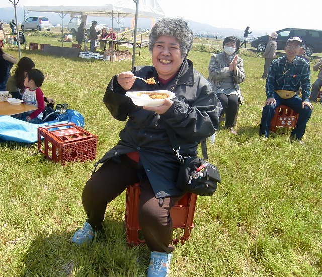 交代で昼食 内職ママさん満面の笑顔