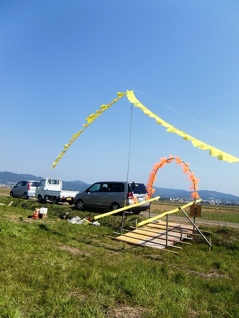 多くの方にメッセージを書いていただいて、黄色いハンカチが風にたなびいています。