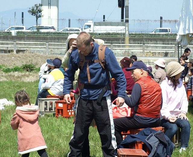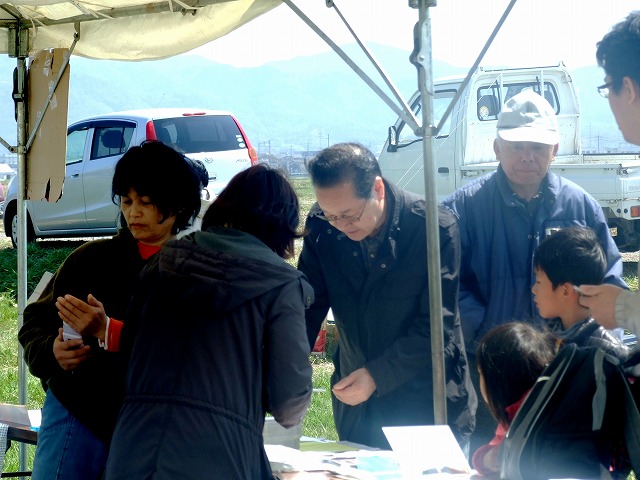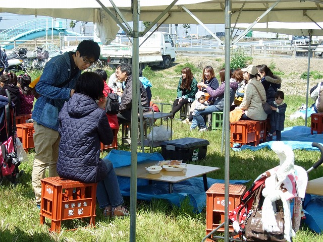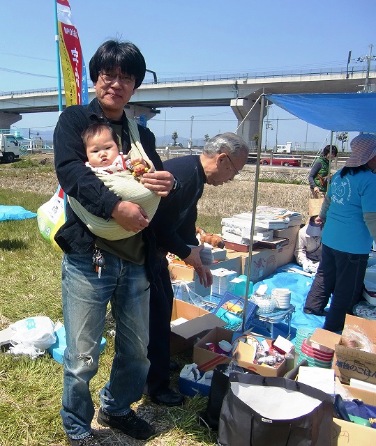 赤ちゃんも参加、 かいさんにバザーの品をいただきました